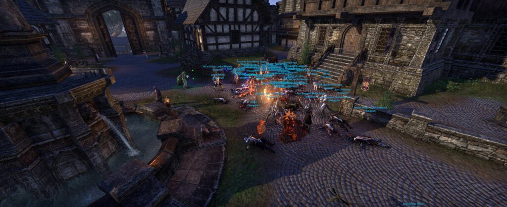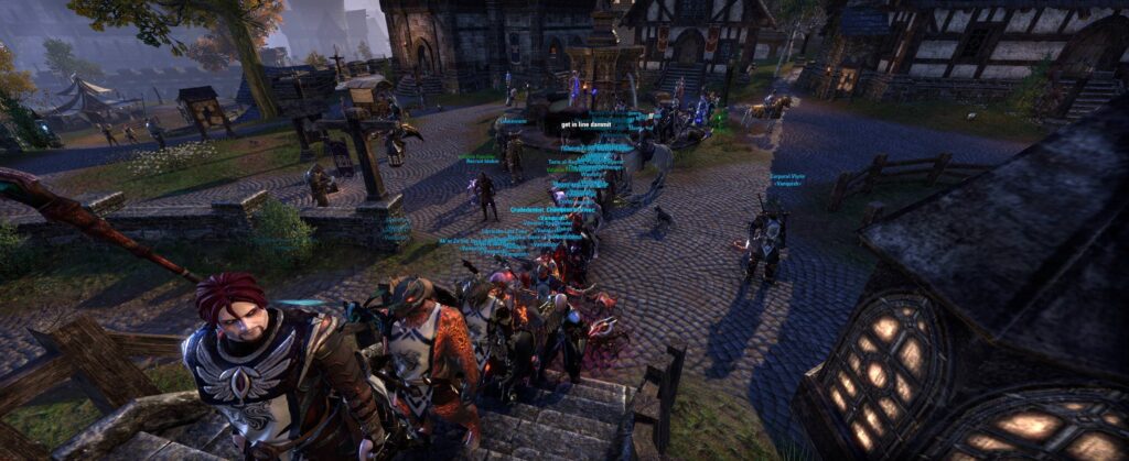 Better get in line, must be something good! (Forming a “flash mob” style line at the bank in Daggerfall, I legit saw a few folks NOT in Vanquish go to the back of the line and form up!)